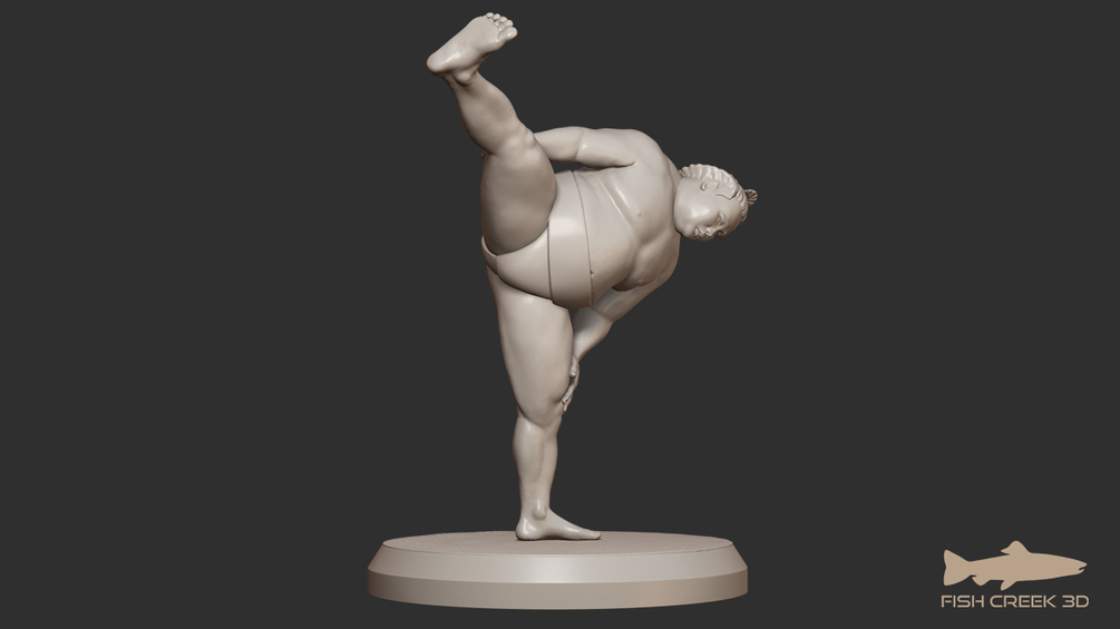 Sumo model in STL format for 3D printing. Supported and unsupported STL files of the model and pedestal are included. The STL file is sized to 35mm scale; for 28mm scale you should scale it down to 80% of the original size.