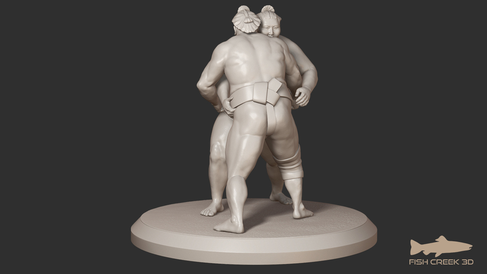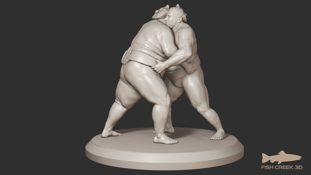 Sumo model in STL format for 3D printing. Supported and unsupported STL files of the model and pedestal are included. The STL file is sized to 35mm scale; for 28mm scale you should scale it down to 80% of the original size.
